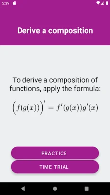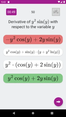 You have the possibility to perform different assessments and math problems. Now you can solve differential calculus exercises, including the calculation of derivatives of functions of one variable and partial derivatives of functions of several variables. Infinite short and quick exercises. Practicing has never been so easy. And not least: Free!