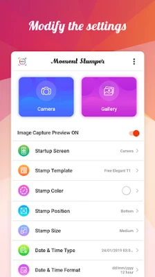 ON/OFF toggle to add #MomentStamp tag on the Gallery Photos or on image that captured with this date camera!
